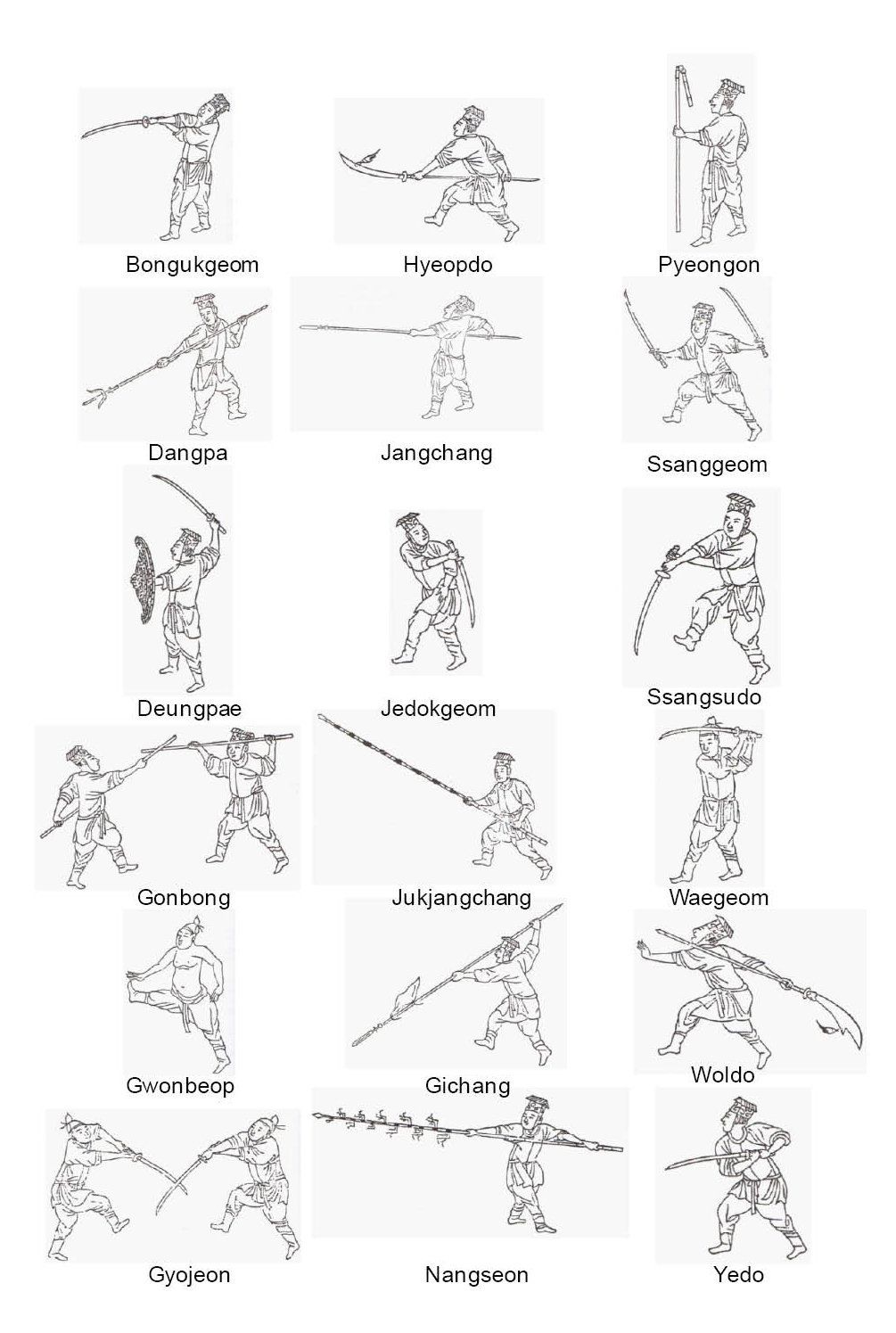 Naast het ongewapende vechten leer je binnen Ji Do Kwan ook de kunst van traditionele Koreaanse wapentechnieken. Deze achttien wapenvormen, bekend als Sibpalki, worden geleidelijk aangeleerd, passend bij het niveau en de ontwikkeling van de beoefenaar.